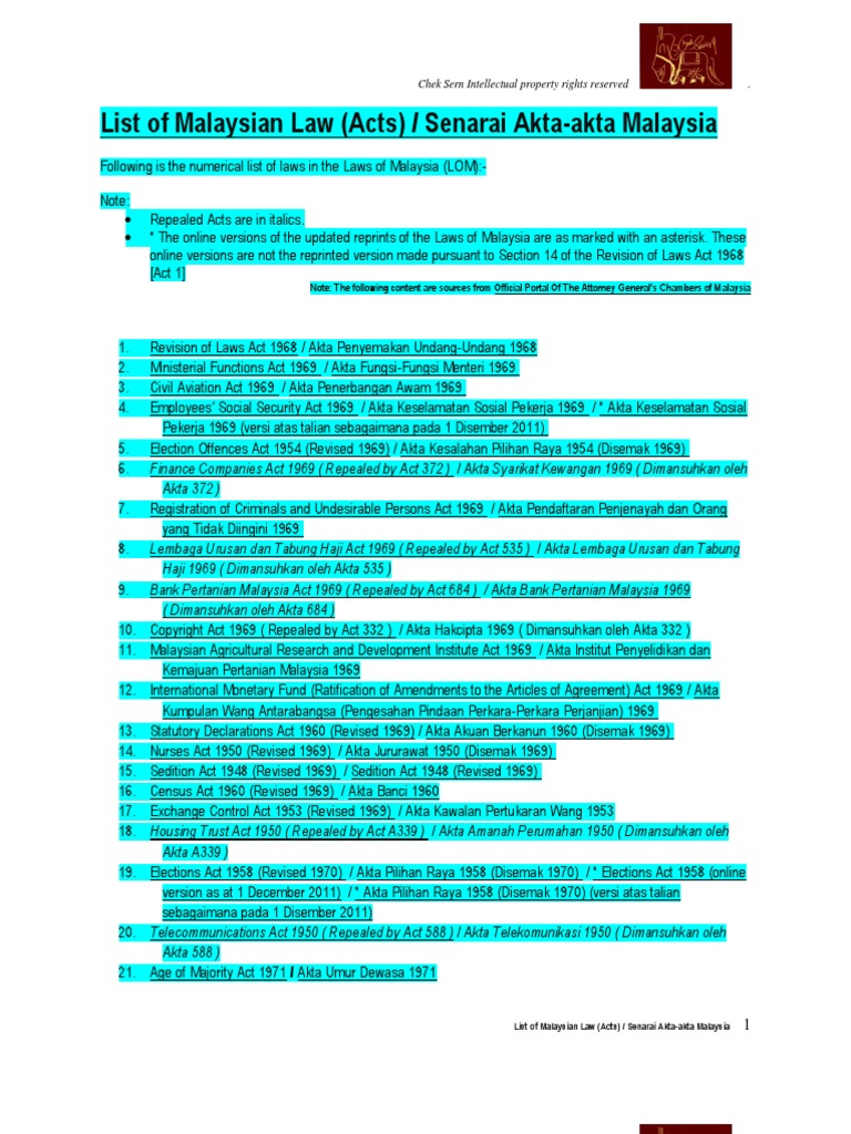 Jenayah di malaysia, penjara di malaysia, senarai akta parlimen malaysia, akta keselamatan dalam negeri. * the online versions of the updated reprints of the laws of malaysia are. Perlembagaan persekutuan melalui perkara 74 dan senarai 2 (senarai negeri) dalam jadual kesembilan memperuntukkan bahawa urusan tanah termasuk di bawah bidangkuasa. Jump to navigation jump to search. Akta mesin cetak dan penerbitan 1984. Menurut kajian yang dijalankan pada tahun 2012, institut penyelidikan keselamatan jalan raya malaysia melaporkan bahawa sekitar 23.3% pemandu dalam kemalangan maut adalah positif alkohol. Ambiga bercakap tentang situasi kebebasan di malaysia sewaktu menjadi anggota panel malaysia freedom summit 2015 yang. Berikut adalah senarai akta utama yang digubal oleh parlimen malaysia. Following is the numerical list of laws in the laws of malaysia (lom):note: Berikut dikongsikan senarai universiti awam (ipta) yang terkini di malaysia. Pindaan 1993 kepada perlembagaan malaysia. Berikut adalah senarai akta yang digubal oleh parlimen malaysia. Akta kerajaan tempatan 1976 akta 171.
