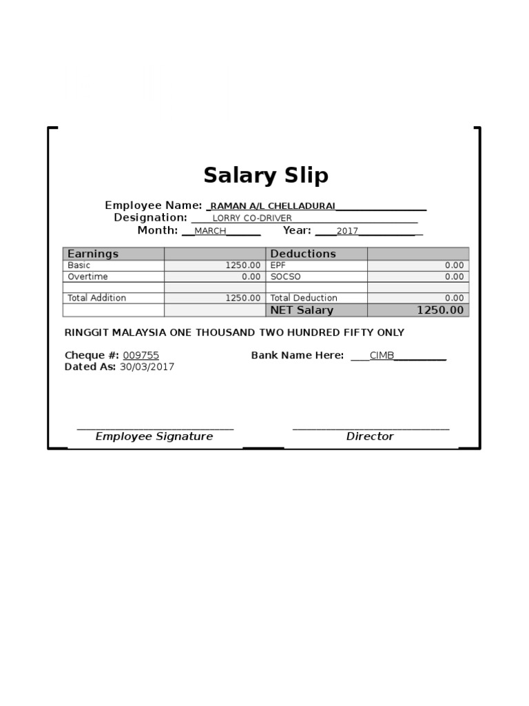 Btw, payroll.my pcb calculator 2020 is powered by hr.my's payroll calculator. Employers are required to contribute 1.25 percent of an employee's monthly wages to socso on a monthly basis (subject to the insured wage ceiling of myr 4,000 per month and capped at myr 49.40). Wages subject to socso contribution: Director's remuneration means the salaries and bonuses paid to director every month. However, if the employee's salary exceeds rm4,000 a month, his salary for the purposes of calculation socso contributions will be deemed to be only rm4,000 a month. Benefits accorded to them will be based on a ceiling rate of rm4,000. The employees themselves do not need to contribute to socso. Employers are only required to pay contributions based on the total wages paid to employees for the month. You may have noticed deductions from your monthly gross salary as stated on your payslip during your time as an employee before starting a company. The social security organization, widely known as socso or perkeso, is a government agency established under the ministry of human resources. 2 other benefits administered by socso, such as invalidity scheme and employment insurance system* are not applicable to foreign employees. However, if the salary is paid until the 15th day of the month, the contribution is based on salary paid for that particular month. All renumeration or wages stated below and payable to staff/workers are subject to socso contributions: