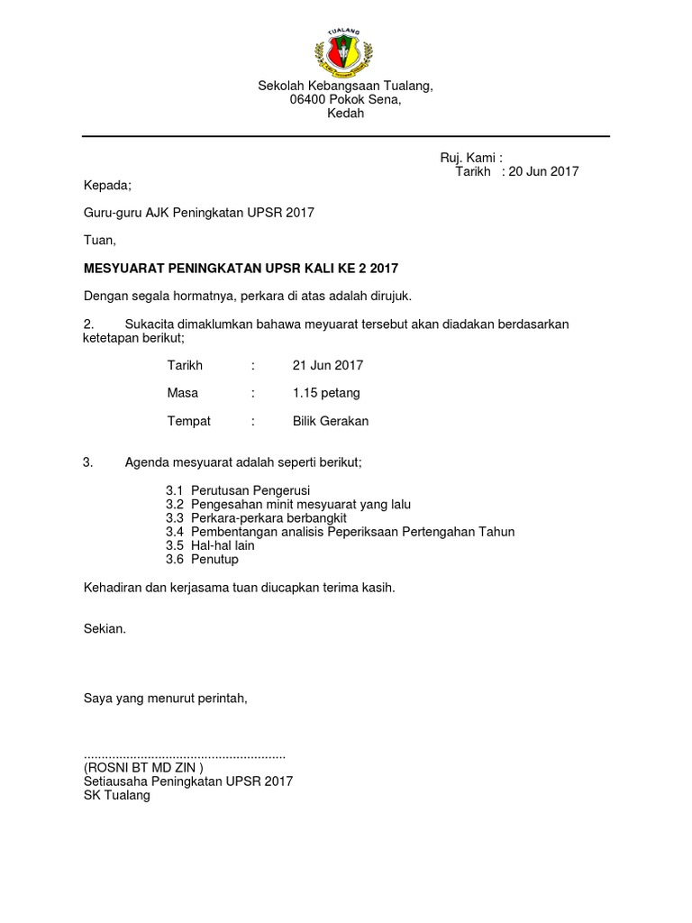 Contoh Minit Mesyuarat Terbaru from imgv2-2-f.scribdassets.com Formal letter example in malayalam; Format surat rasmi kerajaan 2019; 30 mac 2017 hari : Semak format penulisan yang terbaik tahun 2021. 4 orang turut hadir (jika ada) : The copyright of the image is owned by the owner, this website only displays a few snippets of several keywords that are put together in a post summary. Minit mesyuarat 1 2017 b i. Untuk memastikan perjalan pengurusan sekolah berjalan dengan lancar, mesyuarat perlu dilakukan.